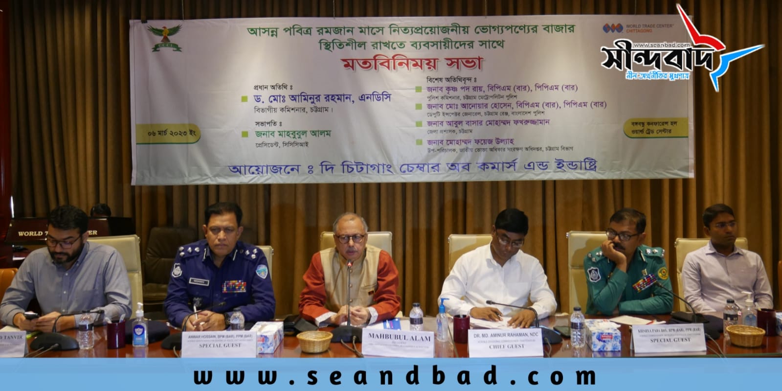 দি চিটাগাং চেম্বার অব কমার্স এন্ড ইন্ডাষ্ট্রি’র উদ্যোগে আসন্ন পবিত্র রমজান মাসে নিত্যপ্রয়োজনীয় ভোগ্যপণ্যের বাজার স্থিতিশীল রাখতে ব্যবসায়ীদের সাথে মতবিনিময় সভা অনুষ্ঠিত হয়।