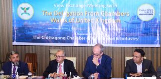 যুক্তরাজ্যের চেম্বার ওয়েলস্ প্রতিনিধিদলের সাথে চিটাগাং চেম্বারের মতবিনিময় সভা অনুষ্ঠিত